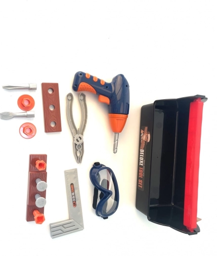 Ta komplet orodja je popolno darilo za majhne mojstre. Vsebuje plastična orodja in funkcionalni vrtalnik za varno in ustvarjalno igro.