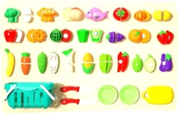 Set za rezanje sadja in zelenjave v praktični košari otrokom zagotavlja zabavo in razvija njihove motorične spretnosti. Vsebuje skupaj 30 delov.
