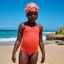 Otroška kapa je zasnovana za starostno skupino 3–9 let in pomaga ohranjati lase urejene in suhe, da lahko otroci brezskrbno uživajo v vodnih vragolijah.