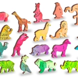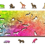 Sestavljanka vključuje kose v obliki živali in predmetov, ki jih je mogoče uporabiti kot majhne figurice.