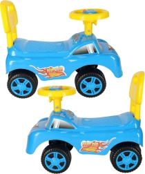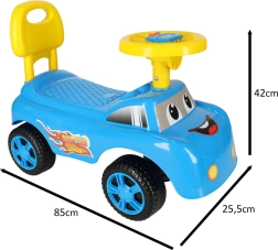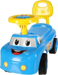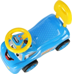 Prisrčen moder poganjalec z nasmehom na čelu podpira motoriko, ravnotežje in samozavest pri prvih vožnjah. Zaradi majhne teže se zlahka prenaša in otrok ga brez truda upravlja. Hupa na volanu vožnji doda realistične avto-doživljaje.