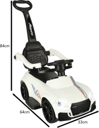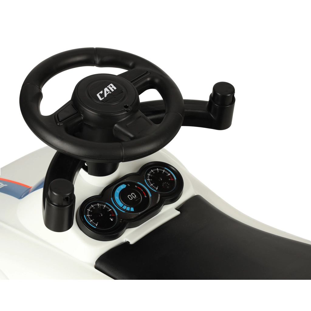 Začnite zabavo doma in na prostem! To vsestransko jezdno vozilo 3-v-1 združuje potiskalnik, poganjalec in samostojno vozilce. Luči in zvoki vsako vožnjo spremenijo v pustolovščino, medtem ko trdna konstrukcija in zaščitni elementi poskrbijo za mirno in varno igro.