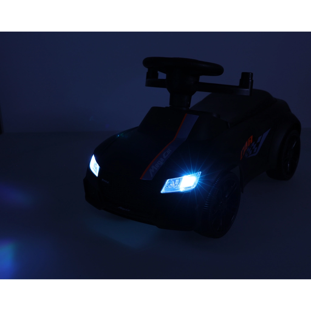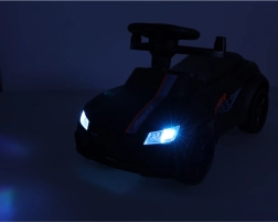 Vgrajena osvetlitev in zabavni zvoki spodbujajo domišljijo in vsako vožnjo spremenijo v mali dirkaški izziv. Dovolj je vstaviti 3× AA baterije.