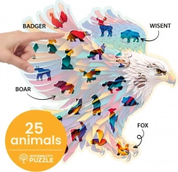 Odkrijte čar sestavljanja z leseno sestavljanko Bistrí orel znamke WOODEN CITY. Izdelek navdušuje s posebej oblikovanimi koščki, ki ustvarjajo nepozabno mozaično sliko živalskih oblik. Z laserjem poudarjeni detajli in samostoječe figurice prinašajo nove izzive in veselje pri sestavljanju.