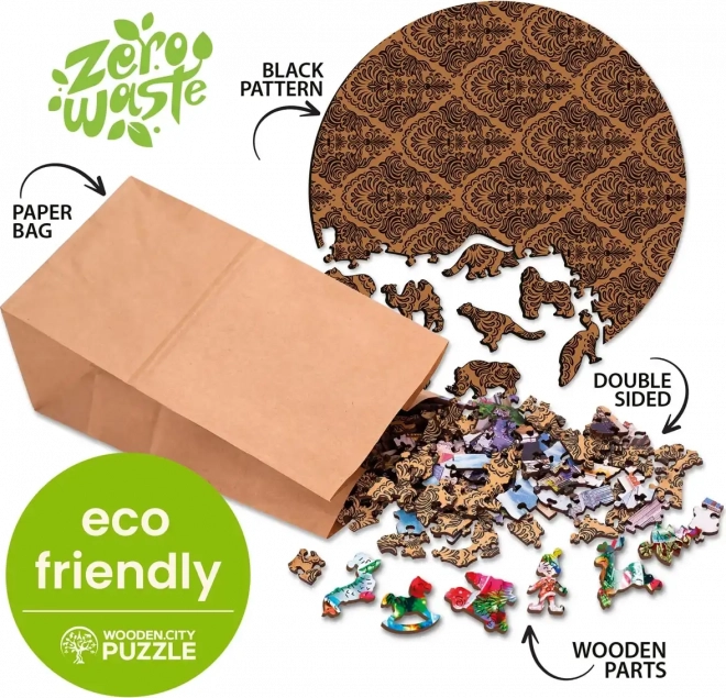 Ta lesena sestavljanka WOODEN CITY z edinstvenimi živalskimi kosi prinaša zabavo in izziv za vse ljubitelje sestavljank. Izrezano z laserjem in brez plastične embalaže.