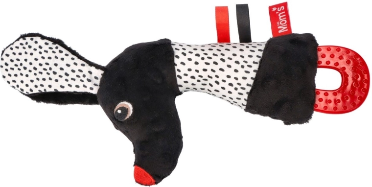 Mehko tekstilno piskajoče grizalo Jammy podjetja Mom's care je ustvarjeno z mislijo na najmlajše. V eno igračo smo združili cel niz občutkov, posebej prilagojenih potrebam vašega malčka. Za šivanje grizala smo uporabili certificirane tkanine z različnimi teksturami. Tako lahko vaš otrok spoznava svet in razvija svoj tip. Poskrbeli smo tudi za pravilen razvoj vida. Črno-bela bombažna tkanina na hrbtni strani in ušesih spodbuja pravilno zaznavanje barv.