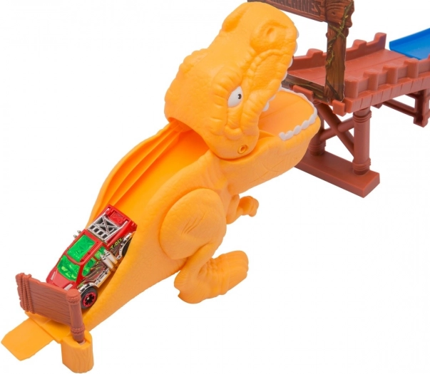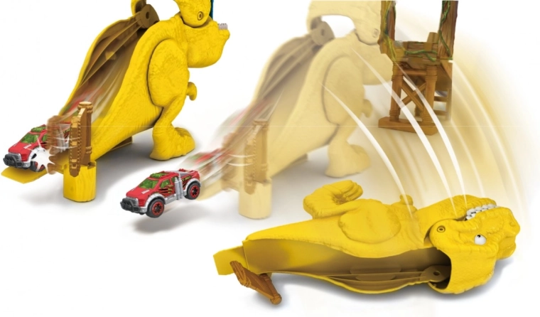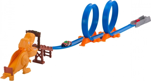 Ti bo uspelo uiti grozečim čeljustim T-rexa? Najvplivnejši med dinozavri čaka na dirkače Metal Machines na koncu te kaskaderske steze. Ugotovi, ali lahko dosežeš hitrost, s katero boš premagal dinozavra na progi z dvema 360-stopinjskima kaskaderskima zankama za kup vznemirljivih doživetij.