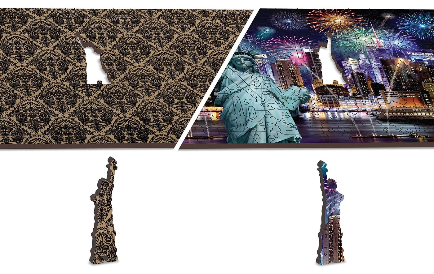 Potopite se v čudovite izzive z našimi dvostranskimi lesenimi puzzlami Nočni New York 2v1. Lasersko izrezani detajli zagotavljajo gladke robove brez trsk in vrhunsko natančnost izdelave: