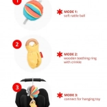 Igrača DISCOVEROSITY 3 v 1 za voziček je zasnovana v sodelovanju s strokovnjaki za montessori izobraževanje. Podpira vizualno stimulacijo, razvija motorične spretnosti in je idealna za uporabo doma in na poti.