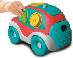 Ta interaktivni sortirnik 3 v 1 združuje gibanje, logiko in zgodnje učenje. Otroci na igriv način osvojijo prepoznavanje oblik in barv, vadijo koordinacijo oko–roka ter se seznanijo z abecedo. Po igri je dovolj odpreti zadnji del avtomobilčka in vse kocke so ponovno pripravljene za novo sortiranje.