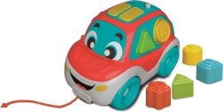 Odkrijte zabaven avtomobilček, ki ga otroci vlečejo za vrvico, potiskajo po tleh in hkrati vstavljajo kocke v pravilne odprtine. Vsako pravilno vstavljanje otroka nagradi z veselim zvokom, kar spodbuja pozitivno povratno informacijo in učenje skozi igro. Zaradi robustne izdelave in mehko zaobljenih robov je igrača varna in primerna za majhne roke.