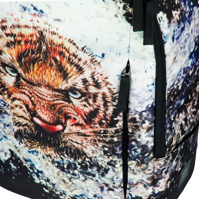 Stajliš mestni nahrbtnik iz 100 % recikliranega vodoodbojnega materiala z izrazitim motivom tigrа umetnika Lukera. Ponuja ergonomsko oblikovan hrbtni del, nastavljive naramnice, notranji žep za 15" prenosnik ter praktična sprednji in zgornji žep na zadrgo. Zaradi nizke teže 500 g, prostornine 18 l in nosilnosti 7 kg je idealen za vsak dan.