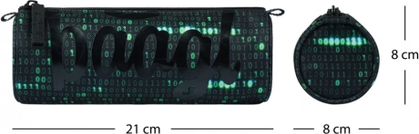 Sodoben študentski peresnik z motivom binarne kode je idealen za vsakdan v šoli ali pisarni. Ponuja praktično zapiranje na zadrgo, trpežen tekstilni material in kompaktno obliko za pregledno shranjevanje svinčnikov, peres in malenkosti.