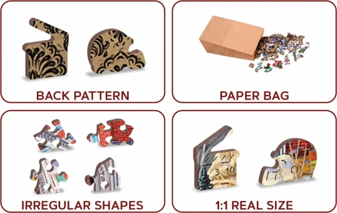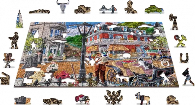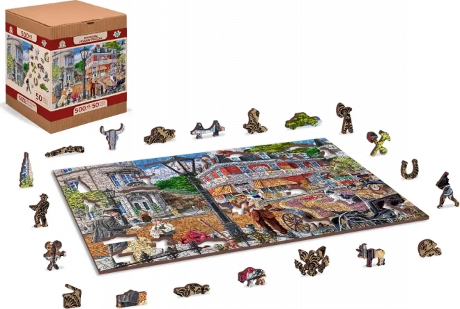 Uživajte v privlačnem sestavljanju z leseno sestavljanko WOODEN CITY, ki prinaša barvito sceno utripajoče zgodovinske ulice. Posebej oblikovani kosi z nežnimi laserskimi detajli povečajo zabavo in estetski vtis – nekatere kose v obliki živali ali predmetov lahko postavite kot majhne figurice.