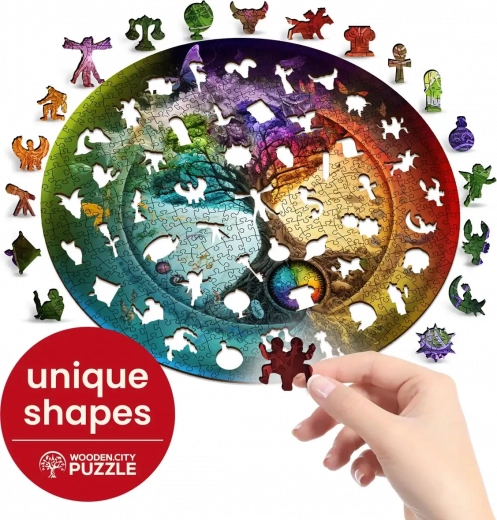 Privoščite si izvirno doživetje sestavljanja z lesenimi puzzli WOODEN CITY Drevo življenja. Posebno oblikovani koščki z živalskimi motivi in finimi laserskimi detajli ustvarjajo privlačno podobo ter hkrati predstavljajo večji izziv kot klasične puzzle. Nekatere kose je mogoče postaviti samostojno kot simpatične figurice.