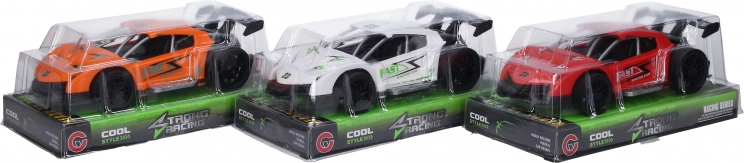 Dirkalni avto na vztrajnik dolžine 15,5 cm je idealna igrača za male dirkače. Na voljo je v privlačnih različicah v rdeči, oranžni in beli barvi, ki pritegnejo pozornost in zagotavljajo dolge ure zabave.