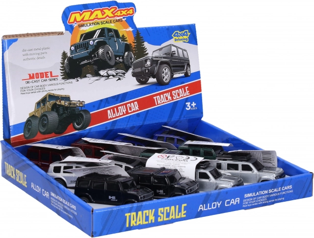Kompakten kovinski terenski avtomobilček dolžine 7,6 cm s povratnim mehanizmom navduši z vzdržljivo izdelavo, ponuja 6 barvnih različic in je dobavljen v display boxu po 12 kosih – odličen za igro in zbiranje.