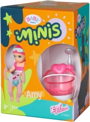Punčka BABY born Minis Amy, velika 7 cm, v rožnatih kopalkah je idealna za majhne otroške roke in pripravljena na vodne pustolovščine.