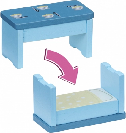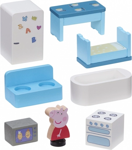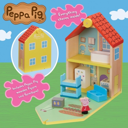 Igralna hišica Pujsa Pepa – hišica se odpre, v njej boš našel leseno pohištvo in 1 figurico.
