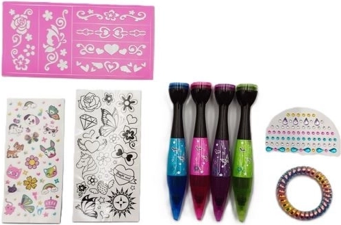 Ustvarite si lastne začasne tetovaže in izvirne poslikave telesa z nizom Tattoo Studio. Set vsebuje flomastre s posebnimi konicami ter žige za hitre motive in šablone za natančne oblike. Idealno za zabave, festivale in otroška praznovanja – enostavna uporaba, kreativna zabava in učinkoviti rezultati v hipu.