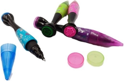 Odkrijte preprost način, kako poudariti svoj slog. Set flomastrov za tetoviranje z žigi Tattoo Studio omogoča ustvarjanje začasnih motivov na koži – od nežnih simbolov do izrazitih vzorcev. Zahvaljujoč žigom lahko lepe oblike ustvari vsak, s šablonami pa naredite tudi bolj zahtevne dizajne z čistimi linijami.