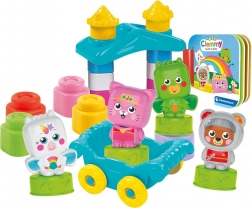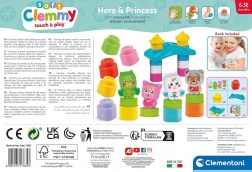 Ta veliki igralni komplet Soft Clemmy je idealna izbira za prve gradbene in senzorične igre. Mehke kocke je mogoče preprosto stiskati, zlagati eno na drugo in jih varno raziskovati, zato so popolna igrača za malčke. Ilustrirana kartonasta knjižica in motiv viteza ter princese spodbujata pripovedovanje zgodb in razvoj jezika.