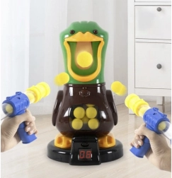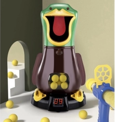 Igra Lačna raca spremeni dnevno sobo v strelišče, polno zabave. Raca ob zadetku zakvaka in na velikem LCD-zaslonu prišteje točko, zato imate rezultat vedno pod nadzorom. Zahvaljujoč mehkimi penastim žogicam je igra varna za otroke in primerna za uporabo v notranjih prostorih.