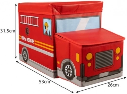 Spremenite pospravljanje v pustolovščino z škatlo za igrače v slogu Fire & Rescue. Zaradi mer 53 × 26 × 31,5 cm sprejme plišaste igrače, kocke, avtomobilčke in likovni material. Pokrov varno skrije otroške zaklade in pomaga ohranjati sobo v popolnem redu.