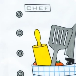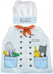 Kostum vključuje bel predpasnik in kuharsko kapo, kar zagotavlja, da se vaš otrok počuti kot pravi kuhar.