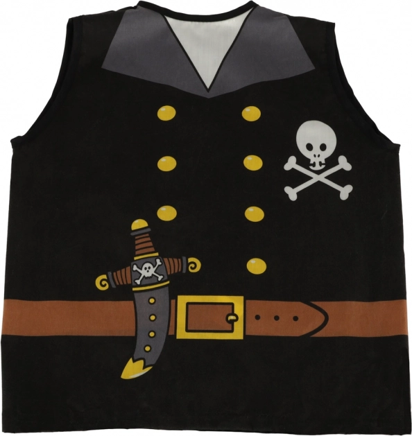 Ostane le še skok na krov in uživanje v nepozabni piratski odpravi! S tem kostumom se vaš otrok hitro spremeni v pravega pirata. Kostum vsebuje vse potrebne dodatke: kamizolo, ruto in prevezo čez oko. Grotesken in avtentičen videz je zagotovljen.