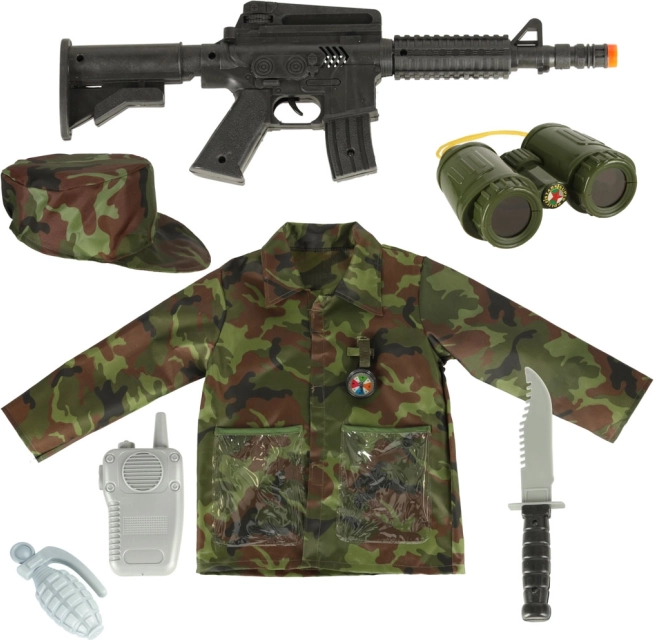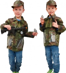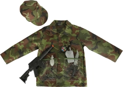 Kostum vojaške uniforme je idealen za krasen čas na maškaradi ali zgolj za popestritev vsakodnevne igre. Z zahvaljujoč tem kompletu se lahko otrok spremeni v pogumnega vojaka, bodisi doma ali na šolski prireditvi. Kostum je izdelan iz udobnega materiala, primernega za otroke od 3 do 8 let.