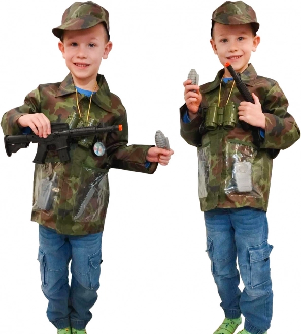 Kostum spodbuja domišljijo in omogoča otrokom, da postanejo pogumni vojaki na vsaki avanturistični misiji.