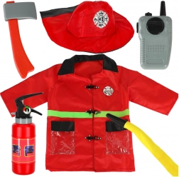 S tem gasilskim setom se lahko otroci igrajo na reševanje ljudi in premoženja. Kostum vključuje rdečo jakno z odsevnimi elementi, gasilski klobuk, radijsko povezavo, gasilni aparat, sekačo in druge dodatke.