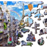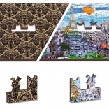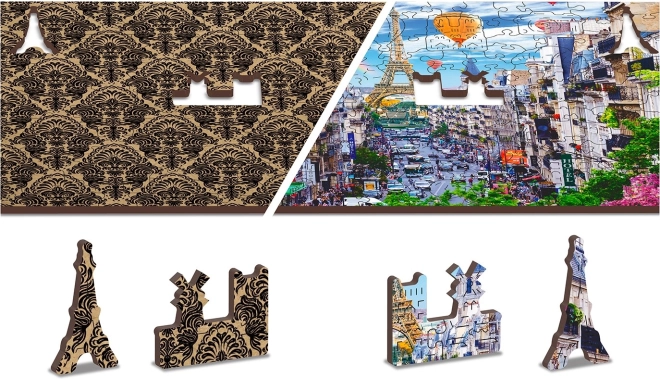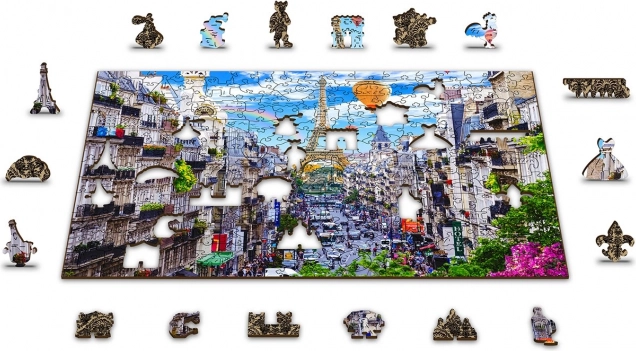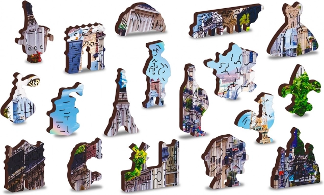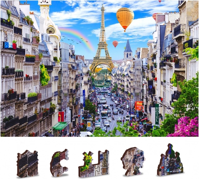 Lesene sestavljanke Hrupen Pariz od WOODEN CITY so edinstvene zaradi obojestranske konstrukcije in posebej oblikovanih kosov, ki pri sestavljanju oživijo celotno sceno. Sestavljanje je zahtevnejše zaradi različno oblikovanih kosov, a hkrati zabavnejše. Predstavlja izziv tudi za izkušene navdušence nad sestavljanjem.