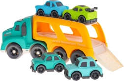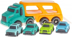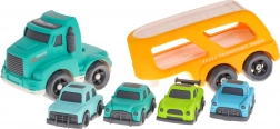 Ta interaktivni komplet spodbuja fino motoriko, domišljijo in zgodnjo igro z vozili. Pisano vlečno vozilo z odklopljivo ploščadjo zlahka prevaža vse štiri priložene avtomobilčke. Zahvaljujoč svetlobnim in zvočnim učinkom je igra privlačna in realistična, pri čemer glasnost ne zmoti domačega miru.