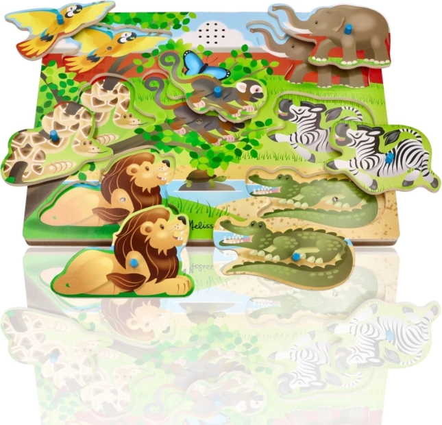 Zvočna sestavljanka Živali iz živalskega vrta prinaša zabavo in učenje za vaše otroke. Ta izdelek pomaga razvijati fino motoriko in prepoznavanje zvokov živali iz živalskega vrta. Varno in enostavno za uporabo tudi za najmlajše otroke.