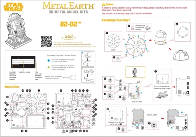 Ta podrobno izdelan 3D kovinski model R2‑D2 iz serije Metal Earth je sestavljen iz jeklenih ploščic, iz katerih oblikujete realistično miniaturo ikoničnega droida. Konstrukcija brez lepila uporablja pametne zapore z upogljivimi jezički, zato je rezultat trden in eleganten model z avtentičnim videzom.