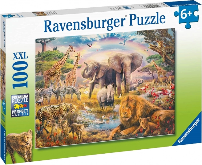 Odkrijte čar divjine z otroško sestavljanko Ravensburger African Safari s 100 koščki – kakovostna zabava za otroke od 7 let, ki razvija logično razmišljanje, potrpežljivost in ustvarjalnost.