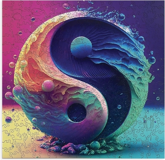 Sestavljanka navduši z modernim in barvitim motivom Yin Yanga, ki simbolizira ravnovesje in harmonijo. Prehodi od turkizne do vijoličaste so osvežujoč užitek za oči.