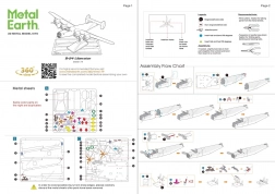 Paket vsebuje 3 jeklene ploščice z deli in pregledna navodila. Orodje ni priloženo – za udobno sestavljanje priporočamo majhne rezalne klešče in tanke ploske kleščice. Končani model je impresivna dekoracija in odlično darilo za ljubitelje letalstva ter modelarstva.