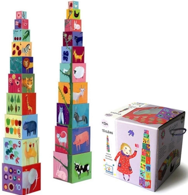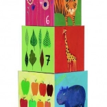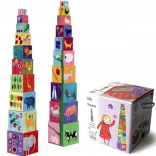 Ta škatlasta stolpnica je idealna igrača za malčke. Ne le da spodbuja njihovo ustvarjalnost in motorične spretnosti, temveč jih tudi seznanja z imeni živali, barvami in številkami. Kocke je mogoče zlagati eno na drugo ali jih vstavljati eno v drugo, kar ponuja veliko načinov igre.