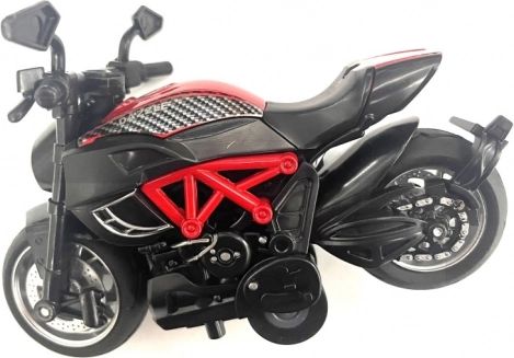 Ta popolni model motocikla v merilu 1:14 je narejen iz kakovostne plastike in očara s podrobnim oblikovanjem. Je idealen za ljubitelje motoristične tehnike in zbirateljske navdušence.