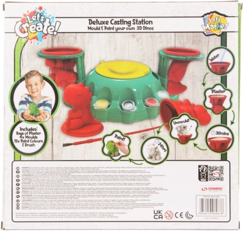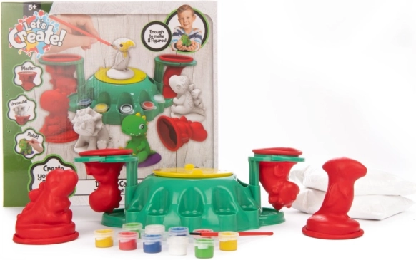 Set za izdelavo mavčnih figur Dino DeLuxe je idealen za male umetnike in ljubitelje dinozavrov. Set vsebuje mavec, kalupe, 5 različnih barvil in čopič, kar otrokom omogoča natančno oblikovanje lastnih dinozavrskih vzorcev. Spodbuja domišljijo in razvija fino motoriko, hkrati pa ponuja ure zabave.