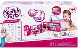 Podajte se na pot z retro avtodomom ZURU Sparkle Girlz in doživite neskončne pustolovščine, polne domišljije. Avtodom se odpre in razkrije kuhinjo, kopalnico, jedilni kotiček, 2 postelji in celo čudovit bazen s toboganom. Ne manjkajo odpirajoči se hladilnik, pečica s presenečenjem in zunanji žar za stilskie piknike. Možna je dodatna okrasitev s samolepkami Sparkle Girlz. Lutka ni priložena.