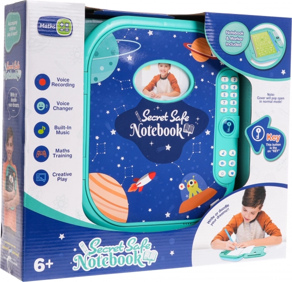 Otroški skrivni dnevnik s kodno ključavnico ne ponuja le shranjevanja pomembnih zapiskov, temveč tudi zabavne in izobraževalne funkcije. Ima pisan dizajn s planeti in raketami ter omogoča osebno prilagoditev. Pred prvo uporabo je treba nastaviti štirimestno geslo, ki zagotavlja zaščito vseh skrivnosti v notranjosti.