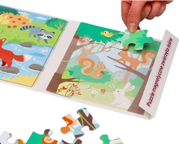 Živahne barve ne le polepšajo igračo, ampak tudi učijo otroke prepoznavanje in poimenovanje različnih barv, kar je osnovno za njihov kognitivni razvoj. Sestavljanje sestavljanke otrokom olajša učenje novih informacij o živalih in njihovem okolju, kar naredi učenje skozi igro učinkovito in prijetno. Dodaten koristen je praktičen zložljivi format, ki omogoča enostavno shranjevanje in prenos, zato je lahko igrača z otrokom skoraj kjerkoli - na družinskem srečanju, med potovanjem z avtom ali v restavraciji. To je neprecenljiva rešitev za starše, ki želijo svojim otrokom zagotoviti zabavo v različnih situacijah.