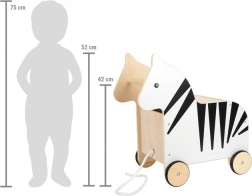 Ta stilski vozni zaboj za igrače v motivu zebre združuje funkcionalen shranjevalni prostor z igrivo mobilnostjo. Otroci ga zlahka potiskajo za ročaj na zebrini glavi ali vlečejo za vrvico, medtem ko tiha gumirana kolesa ščitijo tla in zagotavljajo gladko premikanje. Odstranljiv pokrov omogoča hitro pospravljanje od zgoraj, integrirana zaščita pred priprtjem pa varuje male prstke.