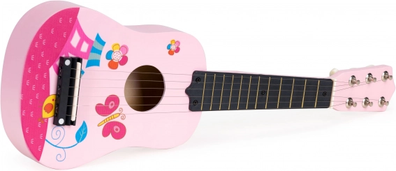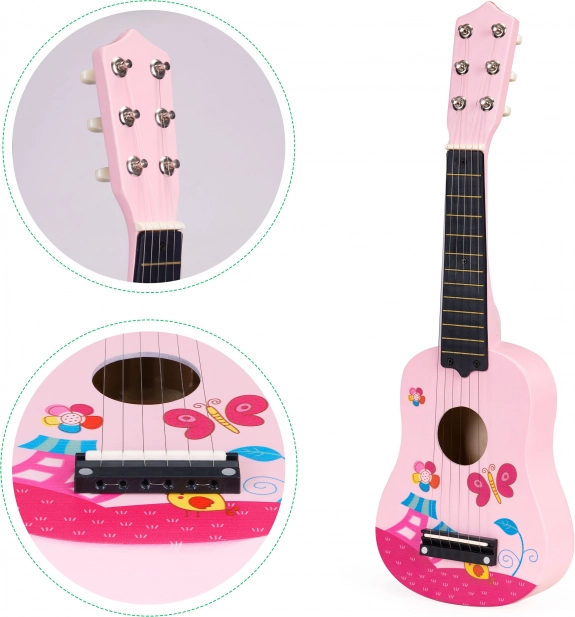 Lesena kitara za otroke znamke ECOTOYS je namenjena otrokom od 3 let dalje. Zaradi uglašenih strun se otroci lahko naučijo igranja enostavnih in zahtevnejših pesmi, in cela družina lahko skupaj nastopa v domačem okolju. Igranje na kitaro pomaga razvijati domišljijo, fino motoriko in smisel za ritem.