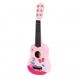 Otroška roza lesena kitara s kovinskimi strunami ECOTOYS