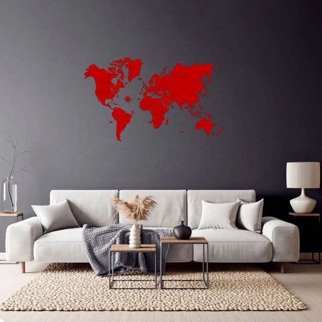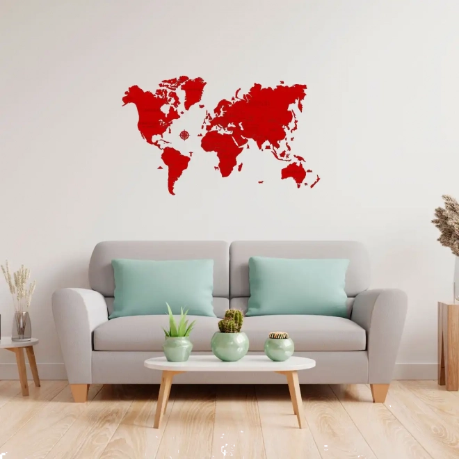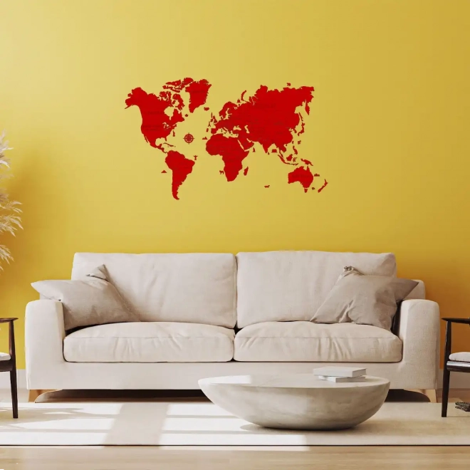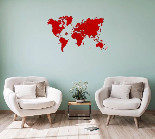 Ustvarite izrazit oblikovalski element doma ali v pisarni. Ta ročno poslikan leseni zemljevid sveta v rdeči barvi prinaša čiste linije, sodoben videz in preprosto namestitev s priloženim obojestranskim lepilnim trakom. Zahvaljujoč natančnemu laserskemu izrezovanju iz brezove vezane plošče izstopa po podrobnostih in vzdržljivosti.